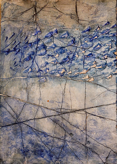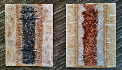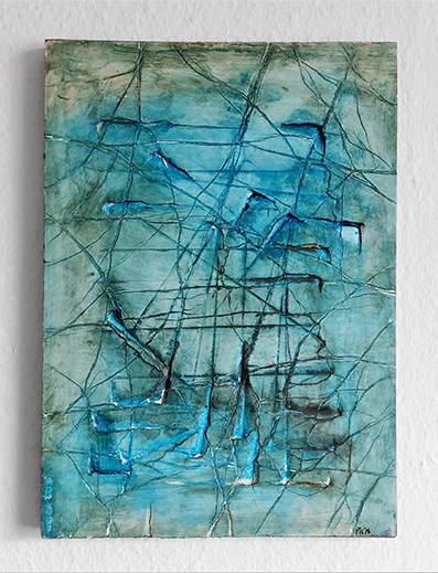 Technik: alte Bleiplatten, Vulkansand, Pigmente auf Holzplatte