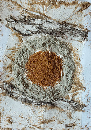 Collagen: verschiedenfarbige Erden aus der Wahner Heide.