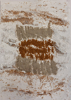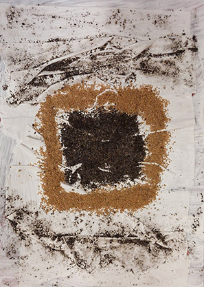 o.T. | 2016, Natursand, Erde, versch. Materialien auf Maltuch