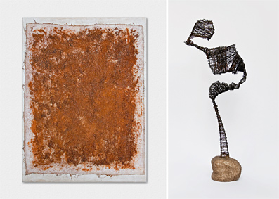 Eisenwolle u. Eisendraht auf Maltuch/MDF Platte, 100 x 120 cm.
