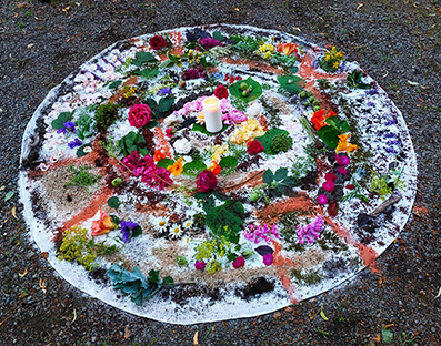Erd-und Blüten Mandala auf Leinwand, Gemeinschaftsarbeit
