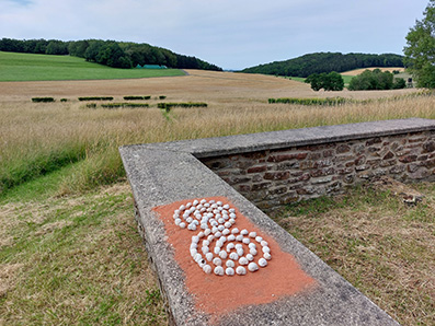 Mit dem 6. gemeinsamen Erdfest kehren die Land-Art-Künstlerinnen Eifel/Köln wieder in die Eifel zurück, auf einen ehemaligen römischen Gutshof "Villa Rustica" (1.Jhdt.n.Chr., in der Nähe des Ortes Roderath), der heute ein archäologisches Denkmal mitten in der Natur ist. Stille und Kontemplation prägen die Umgebung. Mit bewaldeten Hügeln, Wiesen und Feldern ein idealer Ort, um die Erde zu würdigen, die schon vor Jahrhunderten den Menschen dort ihr Auskommen geschenkt hat.