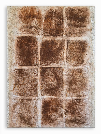 Technik: alte Bleiplatten, Vulkansand, Pigmente auf Holzplatte