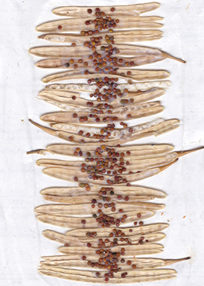 Collage Samen u. Samenschoten wilder Raps